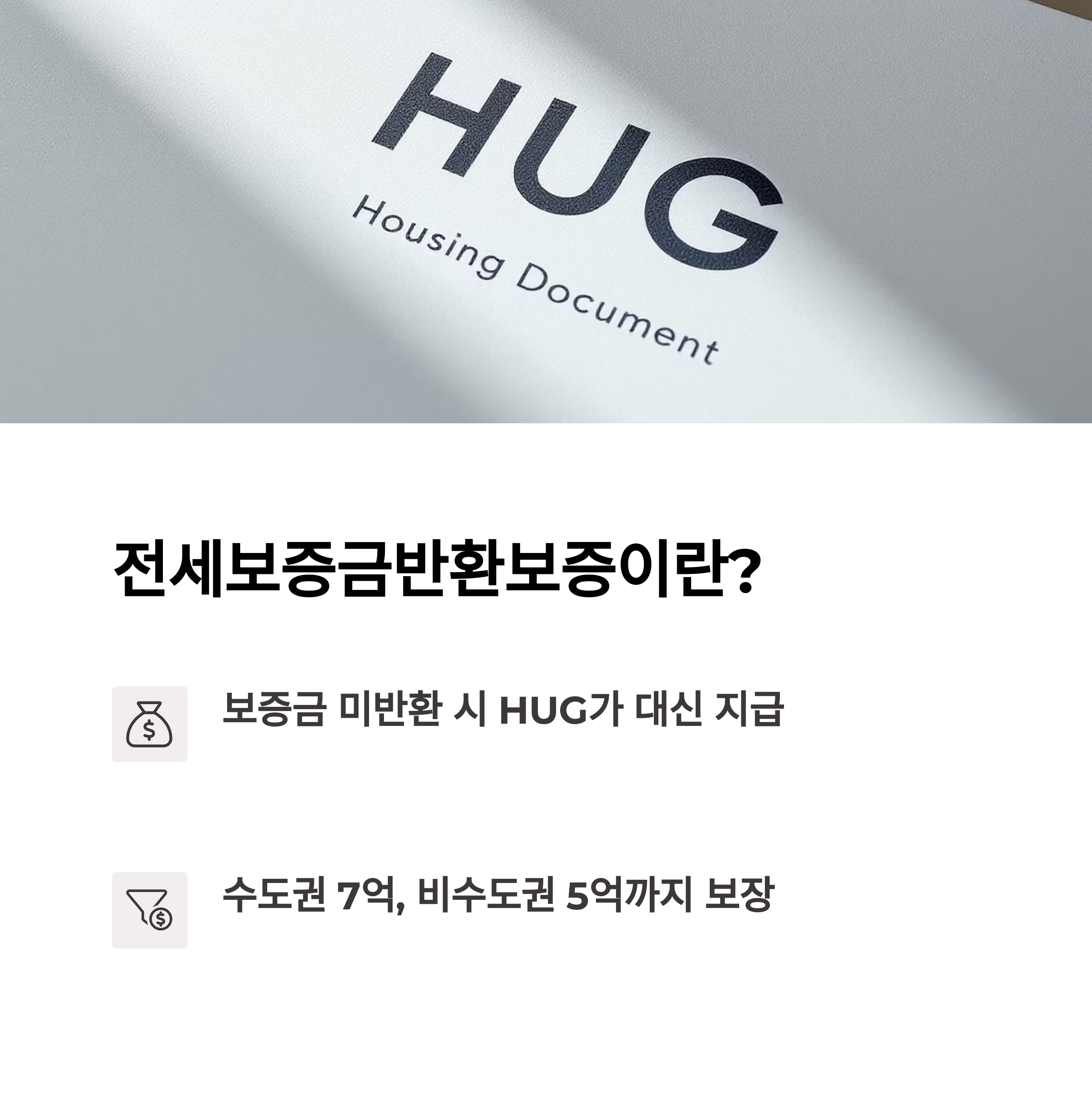 전세보증금반환보증은 전세계약 종료 후 임차인이 보증금을 돌려받지 못할 경우, 주택도시보증공사(HUG)가 대신 반환해주는 보증 상품입니다.