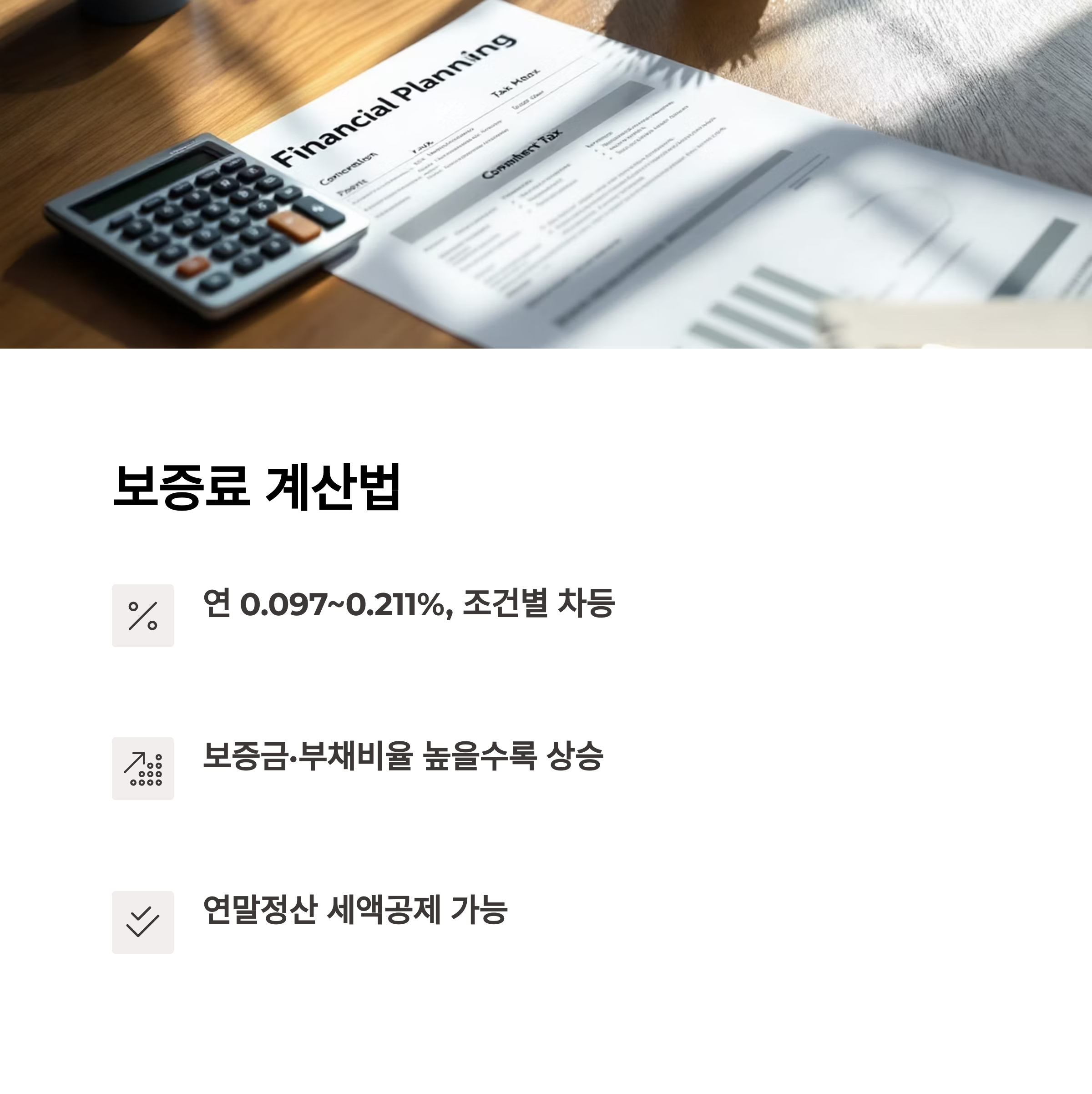 보증금액, 주택유형, 부채비율에 따라 연 0.097% ~ 0.211%로 계산됩니다.