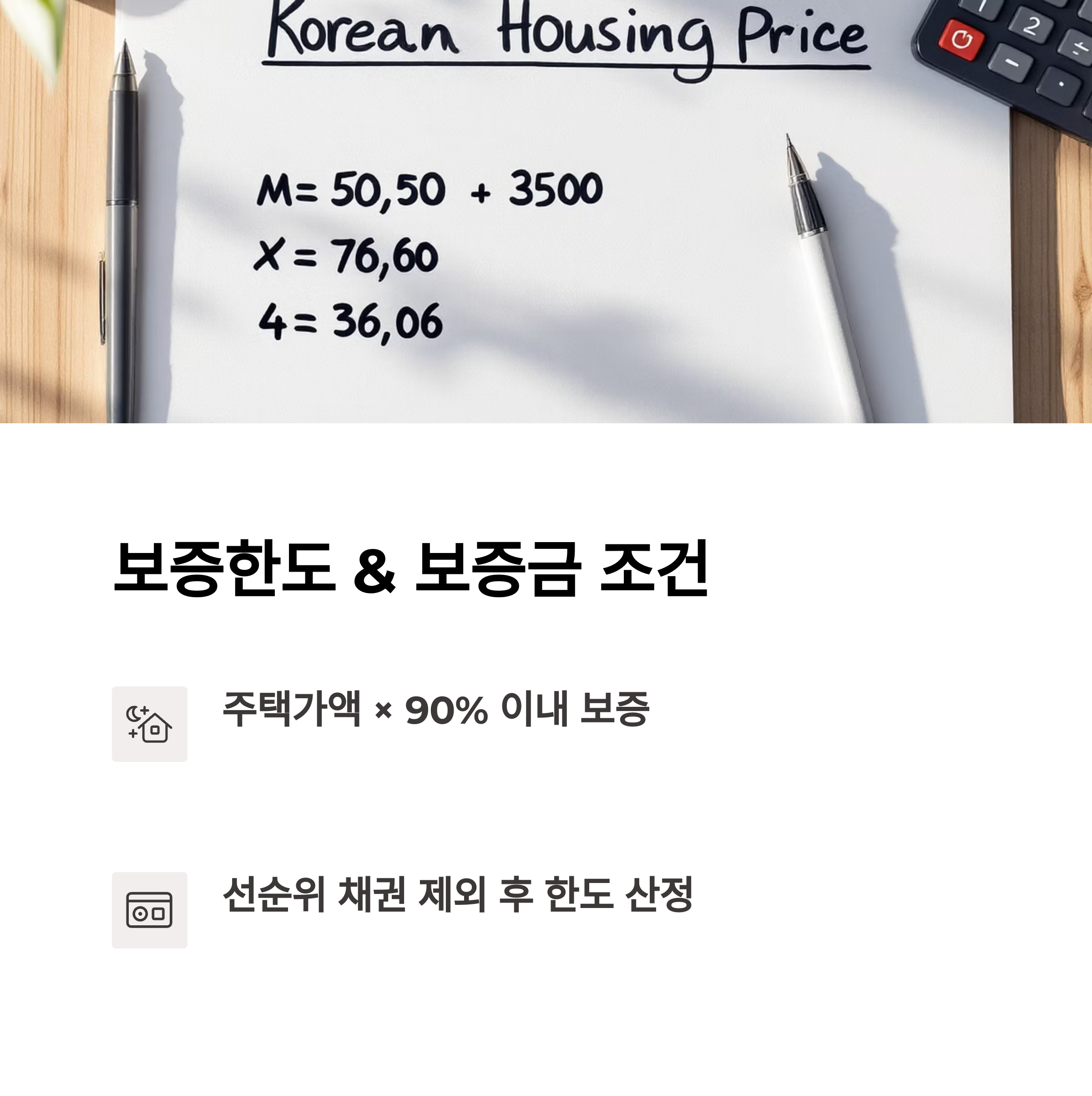 보증금은 주택가격 × 담보인정비율(90%) 내에서 선순위 채권을 제외한 범위로 제한됩니다.
